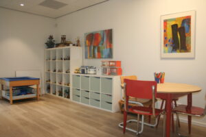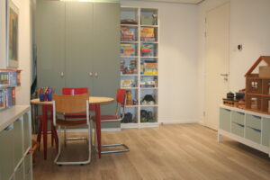 • speelgoed, zoals een zandbak, een kast met schleichdieren/ mensfiguren/ sprookjesfiguren/ ridders/ smurfen, een poppenhuis/ keukentje / winkeltje/ doktersspullen/ poppenbedje, playmobil, verf, klei, handpoppen, zwaarden, spelletjes voor jong en oud en nog veel meer.