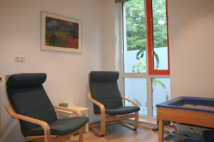 • een tafel met stoelen en een zitje, om rustig te zitten en te praten.